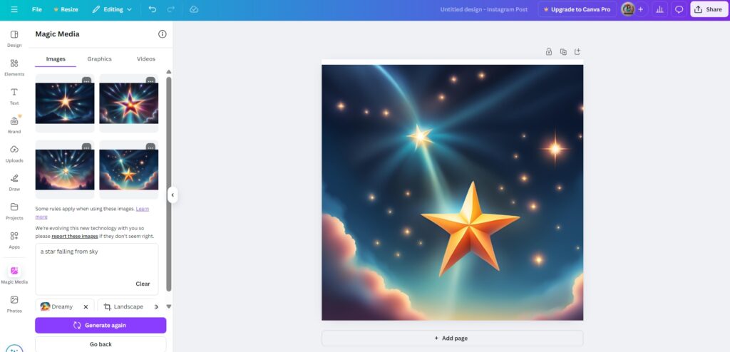 2. కాన్వా ఏఐ ఇమేజ్ జనరేటర్ (Canva AI Image Generator – Magic Media)